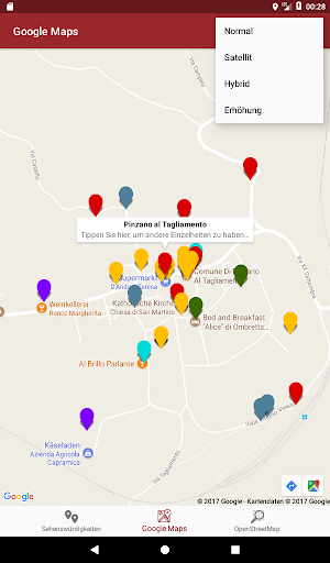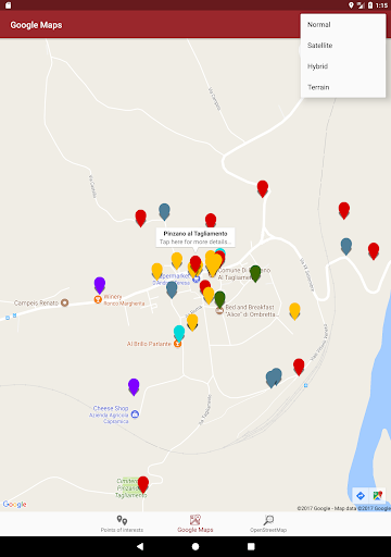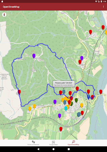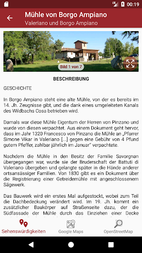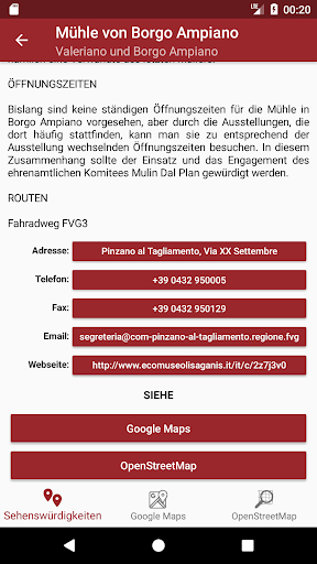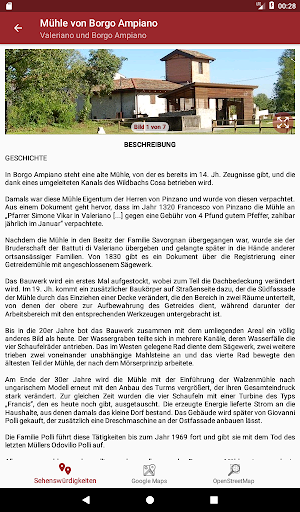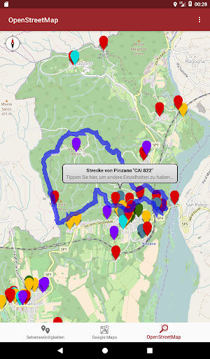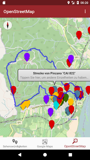 Mit Google Maps können Sie einfach ein Navigationssystem starten, die Sie zeigen, wie Sie einen gewünschten Punkt erreichen können, mit OpenStreetMap jedoch können Sie mehr Details von Pfade von Pinzano haben.
