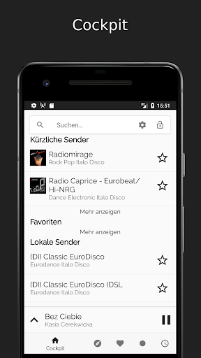 Im cockpit hast du die wichtigsten Sender für dich auf einen Blick.