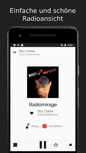 Du kannst deinen Radiostream pausieren und wieder fortsetzten. Wenn dein Radiosender auch Liedinformationen zu verfügung stellt, werden diese auch hier angezeigt.