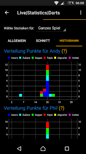und Außen Verteilung, Einzeldartvergleich, "Burndown" Diagramm und vieles mehr!