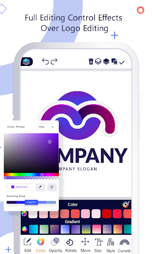 Logo Maker bietet auch professionelle Fotobearbeitung und Textbearbeitungswerkzeuge wie: Flip, Drehen, 3D drehen, Größe, Größe, Kurve, Schrift, Farbe, Farbton Ich muss schöne Originallogos erstellen.