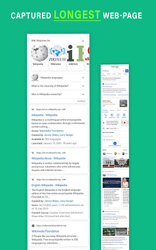 Full Longshot Capture für Webseiten ist ein sehr nützliches Tool für Android-Benutzer, die Master Screenshot von ganzer Webseite annehmen möchten, und konvertieren sie dann in das PDF-Format für Offline-Lesen. Es ist der einfachste Weg, um eine vollständige Webseite in das Bild zu drehen, und es funktioniert wie die Webseite zum PDF-Konverter. Sie können sichtbares Bildschirm aufnehmen sowie Longshot für einen langen Screenshot auf einem Klick aufnehmen.