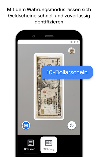 • Mit dem Währungsmodus lassen sich Geldscheine schnell und zuverlässig identifizieren.