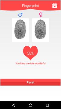 , simply enter your name and girlfriend/boyfriend, the app will check your congenial level and give result in percentage. Besides the name, there are many additional choices for you such as date of birth, love fingerprint, image and sharing.