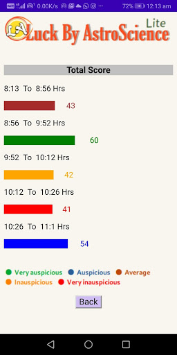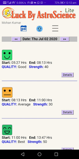 Es teilt den ganzen Tag von 24 Stunden in 10 Teilen teil und sagt Ihnen, was am besten ist, gut, durchschnittlich, schlecht und am schlimmsten Teil des Tages. Es berechnet diese Zeiträume mit Ihrem Datum, Zeit, Geburtsort und Name. Es ist kein verallgemeinertes Sun / Moon-Zeichen oder auf Aszendent-basiertes Material, das auf rund 600 Millionen Menschen gilt und somit kaum persönlich relevant ist. Alle Berechnungen basieren auf Ihrem Namen und dem Datum / der Geburtszeit, das einzigartig ist. Es ist persönlich besonders angepasst.