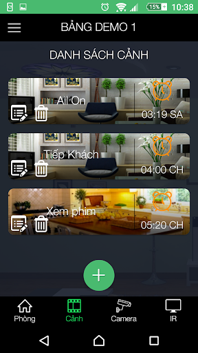 Tất cả các cảnh được thiết lập sẵn (tiếp khách, thư giãn, xem phim, đi ngủ …) được thiết kế riêng cho từng hoàn cảnh. Đặc biệt chủ nhà có thể tự đặt trạng thái các thiết bị trong từng cảnh ngay trên chính điện thoại của mình trong chưa tới 10s đồng hồ.