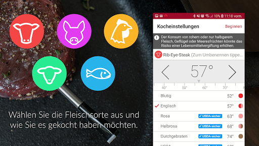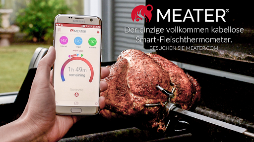Die MEATER App, zusammen mit dem MEATER Fleischthermometer (separat zum Verkauf auf https://meater.com/shop) wird die Kochweise Ihrer Gerichte verändern und sie zu einem neuen, spannenden Erlebnis machen. Mithilfe von patentierten Software-Algorithmen, gibt Ihnen die MEATER App Kochzeit-Einschätzungen und begleitet Sie zum saftigsten Steak, Hähnchen, Putenfleisch, Fisch oder andere Fleischteile, die Sie je gekocht haben.