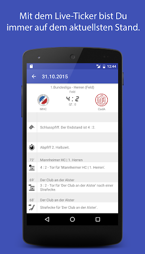 Mit dem MHC Live-Ticker sind Sie stets aktuell über die Spielverläufe und -ergebnisse des Mannheimer HC informiert. Neben den aktuellen Ergebnissen und Spielverläufen bietet die App eine Übersicht anstehender und vergangener Spiele des Feldhockey-Clubs sowie die jeweils aktuelle Tabelle.