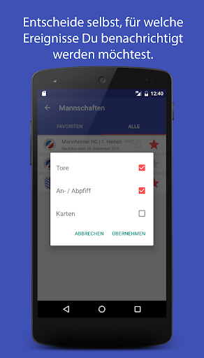 Sie können ganz einfach Ihre Lieblingsteams als Favoriten markieren. Der MHC Live-Ticker ermöglicht es Ihnen, individuell zu definieren, ob und in welchen Fällen Sie per Push-Benachrichtigung über Neuigkeiten bei Ihren Favoriten-Teams auf dem Laufen gehalten werden möchten.