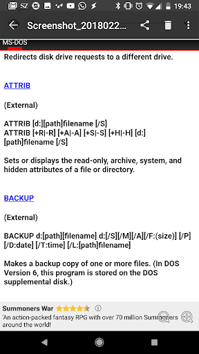 Diese App beschreibt alle MS-DOS Kommandos. Sehr hilfreich für denjenigen der auch mal auf der Konsole arbeiten muss.