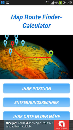 Karte Route Finder / Rechner App ermöglicht Ihnen, detaillierte Kartendaten überall auf der Welt zu erhalten, informiert Sie über den Breitengrad, Längengrad & die Adresse Ihres aktuellen Standortes, Orte in der Nähe (Cafes, Banken, Bus, Gaz-Stationen, Restaurant, Schulen, Polizei ...).