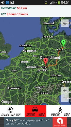 Haben Sie auch die Möglichkeit, die Route anzuzeigen, den Abstand und die Zeit zwischen zwei Orten zu berechnen.
