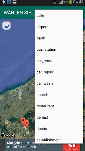 2. Klicken Sie auf Orte in der Nähe, um die Liste der Orte in Ihrer Nähe (50000 m) wie Cafes, Restaurants, Autoreparaturen, Schulen ... mit der Möglichkeit, MAP-Typen & zurück zur aktuellen Position zu ändern