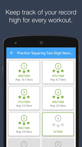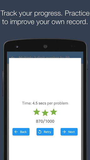 All practice levels contain internal timer to display you the average time that you took per problem. You have to get the problem correct to move on with next problem inside each level.