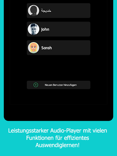 - Benutzerprofile mit Avataren und Namen für mehrere Benuter mit eigenem Lern-Fortschritt