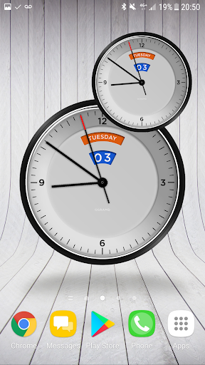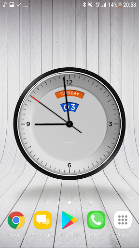 Eine kostenlose minimale analoge Takt-Live-Wallpaper und Widget mit 'Sekunden' Hand- und 'Tag' und 'Datums' Indikatoren.Die Uhr ist wunderschön entwickelt, um minimal, klar und realistisch zu sein, und ist auf eine gekrümmte Kulisse eingestellt, um die Illusion der Tiefe auf dem Bildschirm zu schaffen.