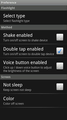 20101026 : If camera led not functional on your device, you can select flashlight type of your device Menugt;Preferencegt;Select type20101025 : Update for android 2.0 and HTC device Works on X06HTII2010912 : You can select color of the screen.Uses your screen and your camera39;s led flash as a flash light