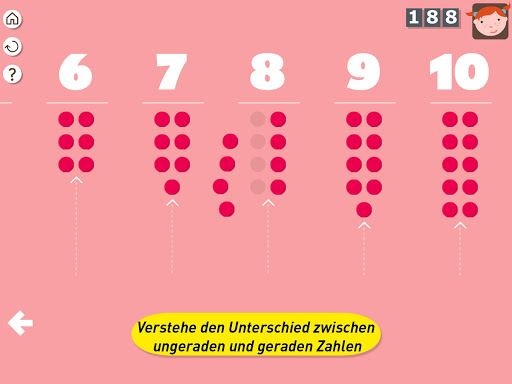 Mit einem klaren und einfachen Ansatz werden die Kinder an die ersten Rechenoperationen herangeführt, die ihre Sicht auf die Mathematik für immer verändern wird, ob sie die Konzepte in der Klasse oder zuhause anwenden. Zudem speichert der integrierte dynamische Progressionsalgorithmus die Fortschritte jedes Benutzers und passt die Spiele an das jeweilige Lernniveau an.