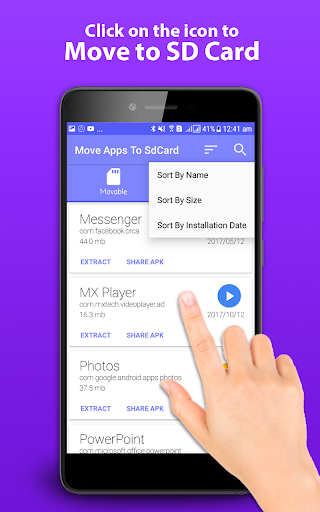 • Sort app by name, movable, time and size