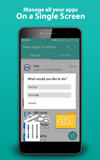 Move apps to sd card helps to move app in easiest way. This Move Apps to SD Card is also like an app manager, helps you can manage your apps in the phone SD card and perform different operation on apps. Is your phone is running out of space ? you can move your apps to SD card using this app. There are lot of options when you click on the app name from list of apps. Here are some useful features i.e Uninstall App, Clear Cache, Clear Data and see the app details ( size, data etc).