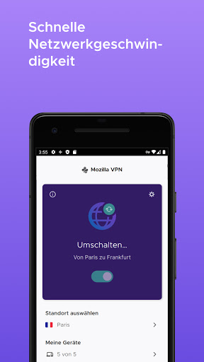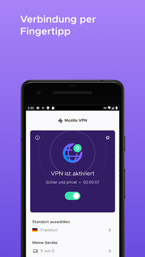 Mozilla VPN bietet eine ultra-sichere und schnelle Verbindung zum Internet auf deinem Android-Gerät. Entwickelt von Mozilla, den Machern von Firefox, verschlüsselt die Mozilla VPN-App deine Internetverbindung und sorgt dafür, dass deine Online-Aktivitäten privat bleiben.