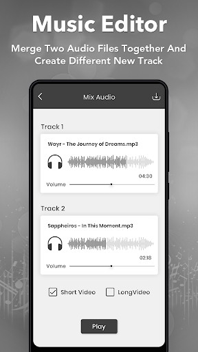 - Music Mixer : mix audio of two songs to create remixes.