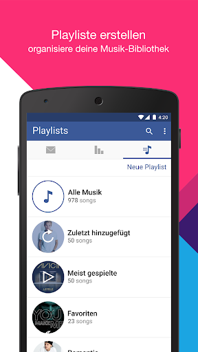 • Erstelle Playlists und sortiere deine Musiksammlung.