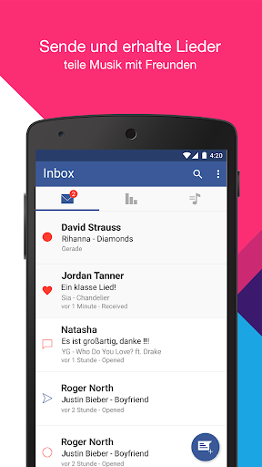 • Verschicke Lieder und Musikvideos so leicht, wie du eine Chatnachricht sendest.