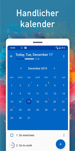 Mit Kalender können Sie die Anzahl der Aufgaben am Tag anzeigen, neue Aufgaben hinzufügen und erstellte Aufgaben bearbeiten.