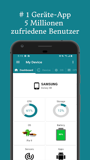Mein Gerät ist eine leistungsstarke, aber einfache App, mit der Sie alle wichtigen Details über Ihr Telefon kennen lernen können. Ob es sich um Informationen über Ihr System auf Chip (SoC), die Erinnerung an Ihr Gerät oder Tech-Spezifikationen über Ihre Batterie oder alle relevanten Informationen über Ihre Gerätesensoren - Mein Gerät ist Ihr One-Stop-Platz für all dies. Komplette Auflistung aller Software- und Hardware-Details.