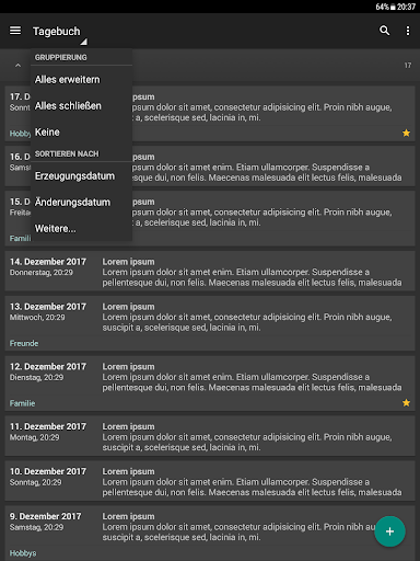- Sortieren Sie Ihre Tagebucheinträge nach Erzeugungsdatum, Änderungsdatum, Titel und Kategorie