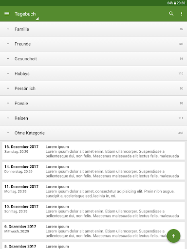 - Organisieren Sie Ihre Tagebucheinträge in Kategorien