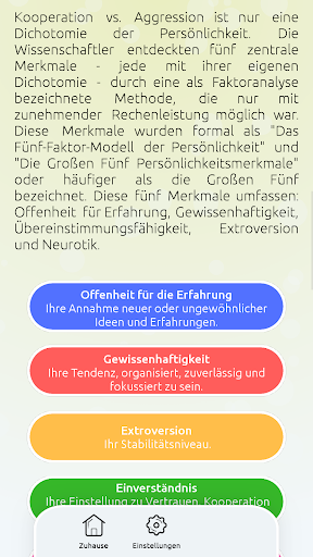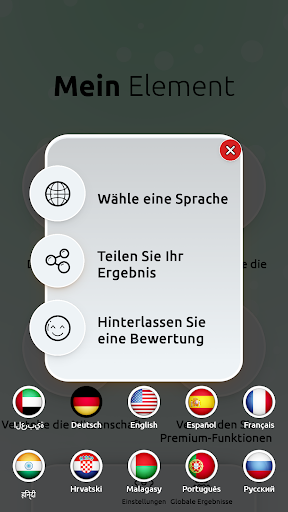 Mein Element ist eine Vereinigung zwischen zeitgenössischer Persönlichkeitstheorie und archaischem Wissen über die vier Kernelemente: Wasser, Wind, Feuer und Erde. Es ist eine Ehe zwischen Wissenschaft und Mystik. Wenn Sie sich jemals gefragt haben, welches Element ich bin? oder "Was ist mein Persönlichkeitstyp?", nehmen Sie das 16-Fragen-Quiz, um eine endgültige Antwort zu erhalten. Im Abschnitt "Verstehen Sie die Wissenschaft" können Sie nachlesen, warum Mein Element sich von anderen Persönlichkeitstests oder Persönlichkeitsfragen unterscheidet. Sie können auch die globalen Ergebnisse aller anderen Teilnehmer sehen. Die App ist auch in 10 verschiedenen Sprachen übersetzt.