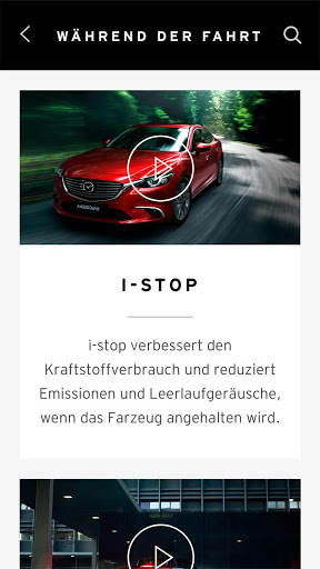 Die My Mazda App ist eine einfache Möglichkeit, um über Smartphone oder Tablet auf Ihre wichtigen Mazda-Dokumente zugreifen zu können, Ihre Inspektionstermine zu koordinieren und Mazda-Händler zu finden. Über die App erhalten Sie auch Zugriff auf Fahrzeughandbücher und Videoanleitungen zu einigen Funktionen Ihres Fahrzeugs (nur für Fahrzeuge mit SKYACTIV-Technologie).