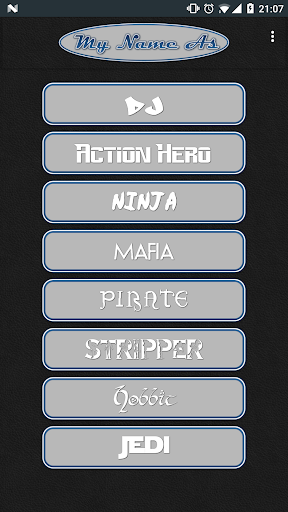 Möchtest du wissen, was dein Name wäre, wenn du ein Pirat / Stripper / Jedi Knight / Ninja / Hobbit / Mafioso / DJ / Action Held / Drache / Sith Lord / Zombie / Super Schurke / Weihnachtself wärst?