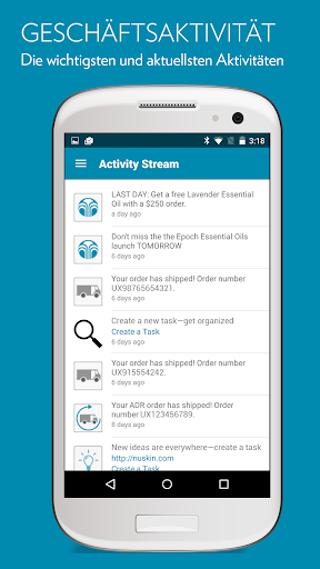 Doch das ist nicht alles, die App bietet noch einiges mehr...So finden Sie beispielsweise die Kontaktinformationen zum Unternehmen, sehen den Bestellverlauf, können sich zu anderen Nu Skin Apps verlinken - um nur ein paar zu nennen. Die My Nu Skin App ist ein wichtiges Hilfsmittel für alle Vertriebspartner, um ihren Geschäftsaufbau unterwegs verfolgen.