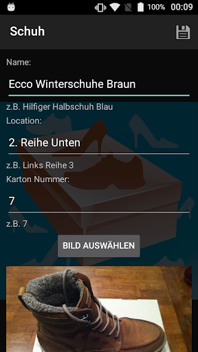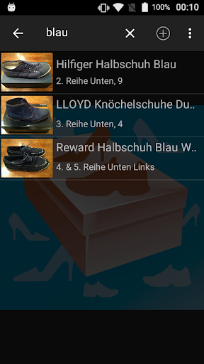 Erfassen Sie zu jedem Ihrer Schuhe, den Hersteller, die Art, die Farbe, die Größe, die Location, ein Foto, sowie die Nummer des Schuhkartons oder was Ihnen sonst noch wichtig erscheint und finden Sie sich einfacher, übersichtlicher und schneller in Ihrem Schuhbestand zurecht.