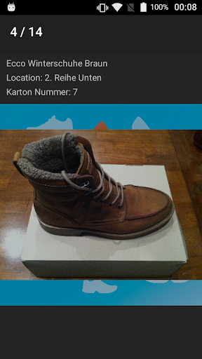 - Erfassen von Schuhen (Hersteller, Art, Farbe, Größe, Location, Nummer des Schuhkartons, Notiz, Foto etc.)