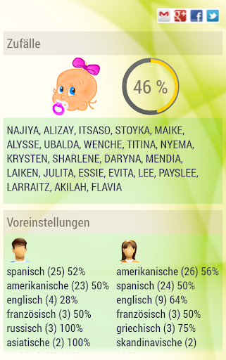 Die app wird die Liste nach den Präferenzen und Zufälle der Eltern bis zu suchen den gewünschten Namen reduzieren.