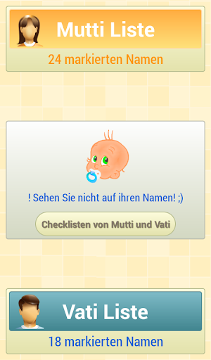 Einmal ausgewählte Mädchen oder junge, erhalten wir eine Liste mit Namen, beschließen beide, Mutti und Vati getrennt ihre Favoriten.