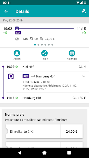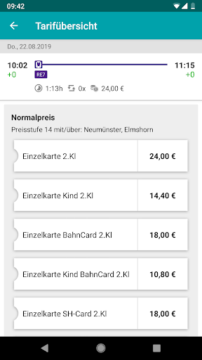 Tarifinformationen und verschiedene Fahrkarten, bekommen Sie direkt mit den Verbindungsvorschlägen angezeigt. So können Sie sehen, was Ihre nächste Fahrt kostet und welche Fahrkarte für Sie die günstigste ist.