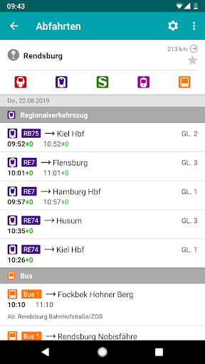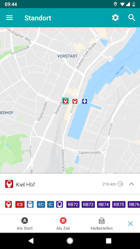 Einen individuellen Routenplaner für Bahn und Bus in Schleswig-Holstein: Von Ihrem aktuellen Standort, einer bestimmten Adresse, der nächsten Bushaltestelle oder einem Bahnhof Ihrer Wahl errechnet der Routenplaner für Sie die beste Verbindung zu Ihrem Ziel und zeigt Ihnen die genauen Entfernungen und Fußwege, aber auch Gleise und Umstiegszeiten an. Durch die Ortungsfunktion der App wird ganz automatisch aus den Informationen zu Ihrer Umgebung die optimale Verbindung ermittelt. Über die Einstellungen können Sie Ihre Suche verfeinern.