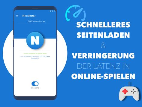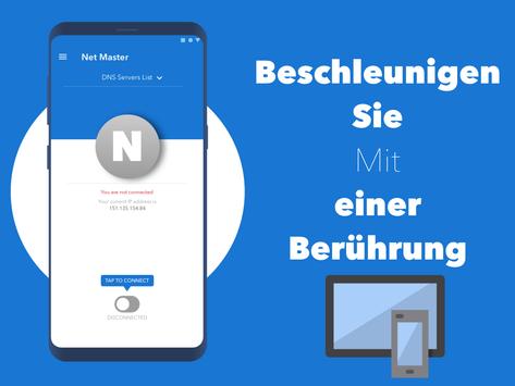 Der Net Master & Optimizer bietet Ihnen eine bessere Internetverbindung. Überprüft DNS-Verbindungen in Ihrer Nähe. Wählt und verbindet mit der niedrigsten Ping-Zeit.
