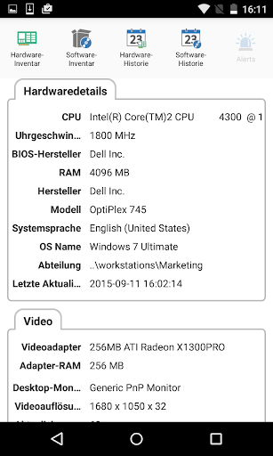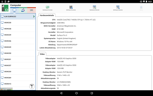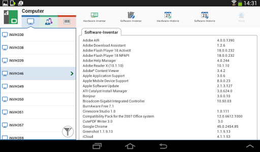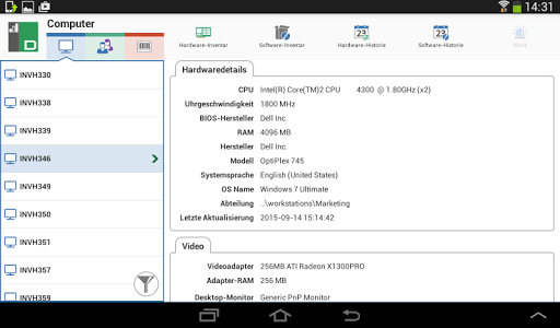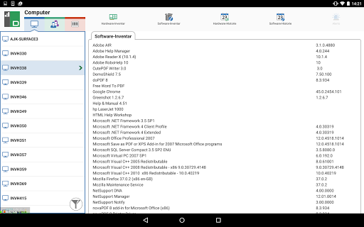 Die DNA Mobil-App ermöglicht es Technikern, wenn sie nicht an ihrem Schreibtisch sind, ein detailliertes Hardware- und Software-Inventar für jeden PC im Unternehmensnetzwerk zu suchen und zu betrachten. Die Mobil-App bietet auch einen QR-Code-Scanner, um jeden PC augenblicklich identifizieren zu können, und zwar entweder mit dem von DNA auf dem Bildschirm angezeigten QR-Code oder mit dem am Gerät angebrachten Aufkleber. Außerdem hat NetSupport DNA eine QR-Code-Aufklebererstellungsfunktion einschließlich Anzeige der benutzerdefinierten Einzelheiten. Die App zeigt auch den Verlauf aller Hardware-Änderungen sowie der Software-Installationen und -Entfernungen.