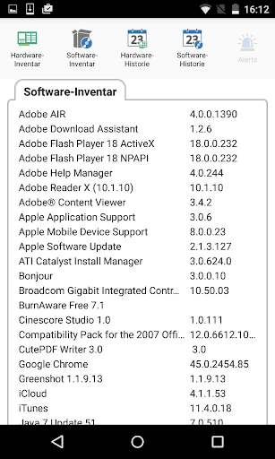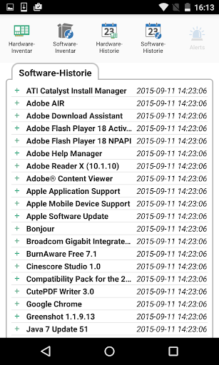 Zusätzlich zu den Inventar- und Verlaufansichten zeigt die NetSupport DNA Mobil-App alle neuen PC Alerts, die im gesamten Netzwerk ausgelöst worden sind.