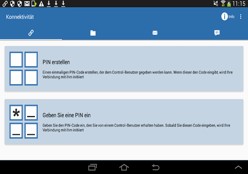 - Das Control kann diskret den Bildschirm eines verbundenen Client Geräts anzeigen (Beobachten-Modus) oder den Bildschirm eines verbundenen Client Geräts fernsteuern (Freigabe-Modus).