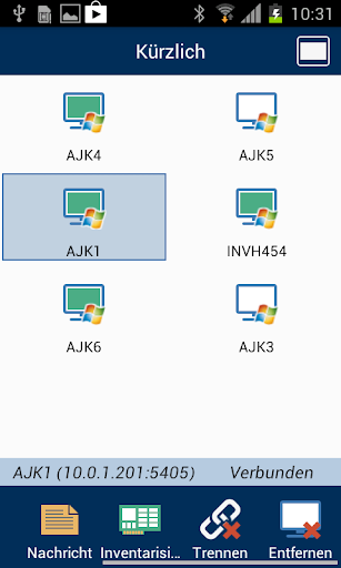 Die ‘Letzte Verbindungen’ Liste bietet schnellen Zugriff auf die zuletzt betrachteten Clients.
