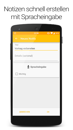 - Durch längeres halten der Notifys sind die Notizen bearbeitbar und können auch wieder gelöscht werden