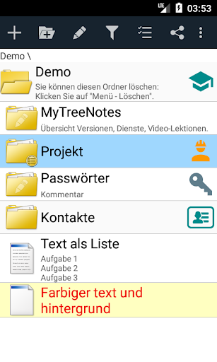 MyTreeNotes Lite - Multifunktionaler Notizblock mit der Möglichkeit, Notizen in Ordnern mit unbegrenzter Schachtelung zu speichern.