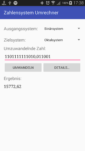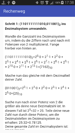 Die Bedienung für die Umrechnung zwischen den Stellenwertsystemen ist denkbar einfach. Man kann sich außerdem den Lösungsweg anzeigen.
